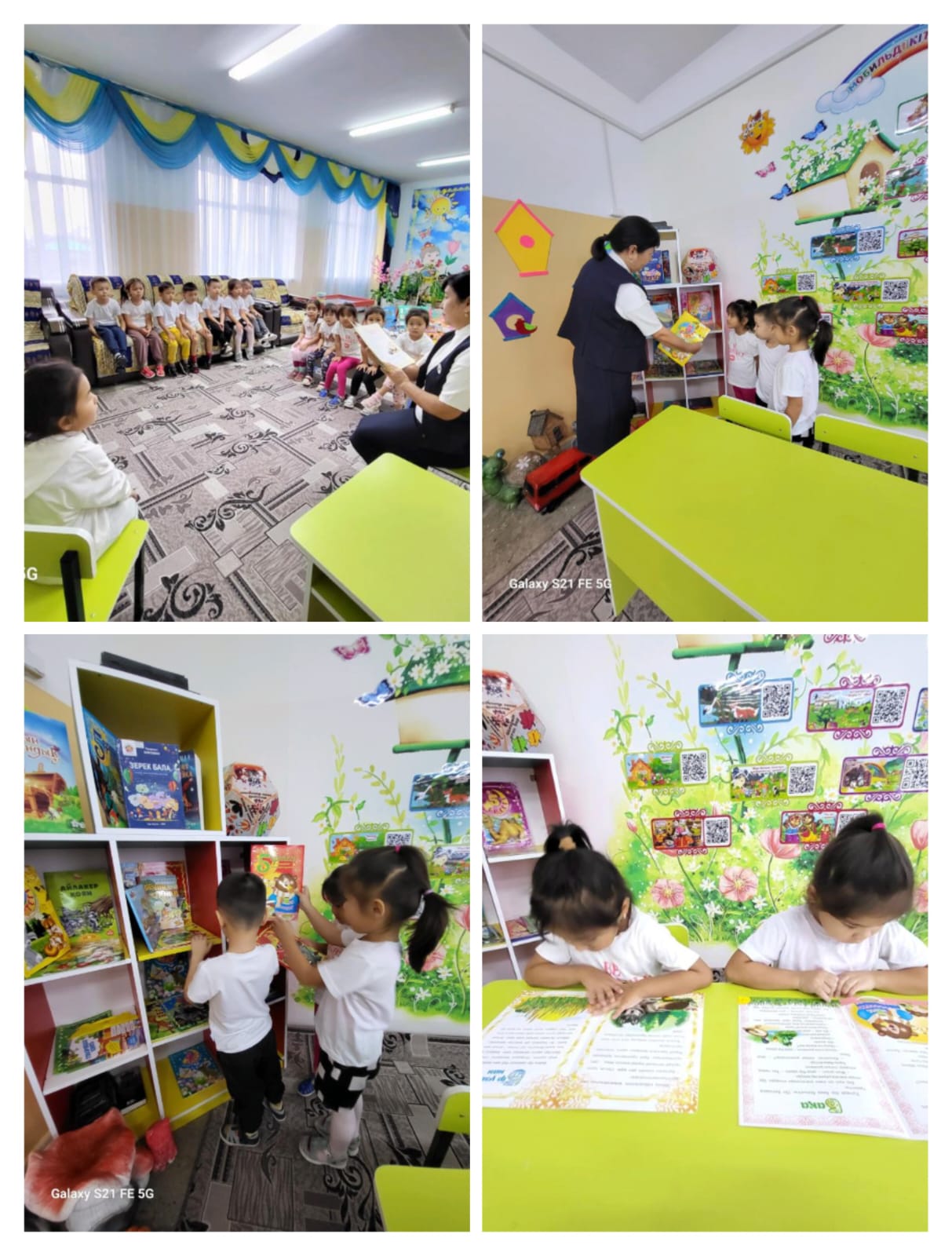 Кітап оқу бұрыштарын құру-балалардың әдебиетке деген сүйіспеншілігін,кітапқа деген қамқорлығын ұлттық қазына ретінде тәрбиеленудің ерекше мүмкіндігі.Балалар кітаппен танысып,үйге оқу үшін кітап алып,балабақшадағы оқу бұрышында ата-анасымен бірге оқи алады.