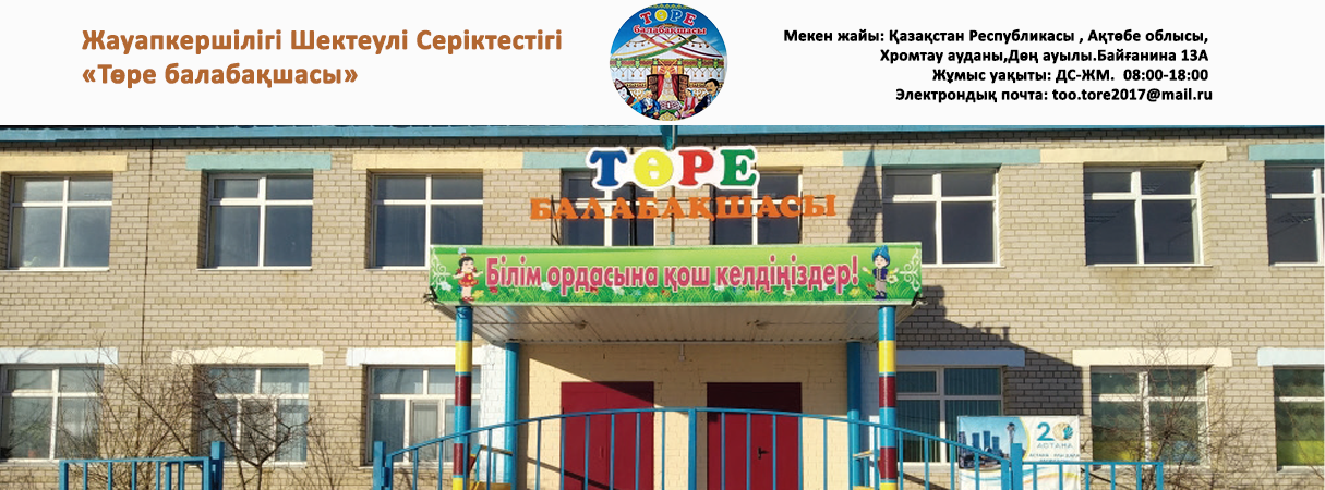 «Төре» балабақшасы - 2017 жылдың мамыр айынан бастап қызмет жасайды. «Төре» балабақшасы- оқыту мен тәрбие беру бағыттың мемлекеттік жалпыға міндетті білім беру стандартының тиімді жүзеге асыруын басты мақсат етіп алған.  Сонымен қатар мектепке дейінгі балалардың денсаулығын сақтау құзыреттілігін арттырып, сауықтыру шараларын жаңа бағытта өткізіп,мектепалды даярлық жұмыстарын толыққанды қамтамассыз етіп, зияткерлік,тұлғалық,әлеуметтік, эмоционалдық дамуын ұлттық рухта тәрбиеленуін отбасымен бірлескен қарым- қатынас барысында реттейтін инновациялық типтегі мекеме. Балабақшамызда балаларды дамыту үшін «Шахмат» және «Үстел үсті  теннисі» үйірмелері қосымша жұмыс жасайды. Заманауи технологияларды қолдану аясында «Құм терапиясы» иннавациялық алаң  және «Эбру» арт-терапиясы  жұмыс жасауда