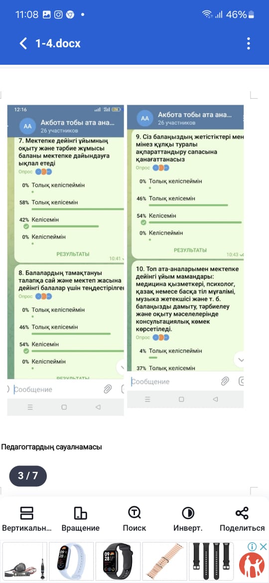 | 1 | Ата-аналарға арналған сауалнама нәтижесі |